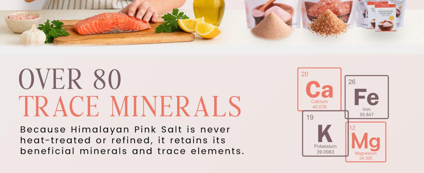 Focus Nutrition's Himalayan Pink Salt is a 100% natural, unrefined salt sourced from ancient sea beds in the Himalayas. This 2 lbs resealable pouch contains fine grain salt rich in over 84 minerals, perfect for culinary use and soothing baths.