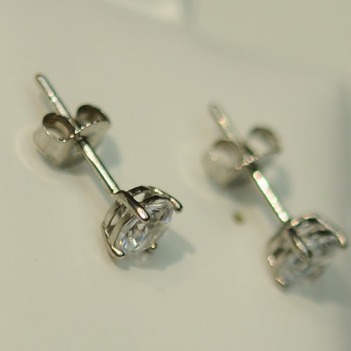 2 Pairs of 0.50 Carat Cubic Zirconia Sterling Silver Stud Earrings. 4mm Each/.25 Carat Round Stone