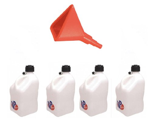 4 Pack New VP 5 Gallon White Race Utility Jugs and JAZ Fuel Funnel Includes: 4 Pack New VP 5 Gallon White Race Utility Jugs Holds over 5 gallons Level markings on outside of jug JAZ Fuel Funnel Kit is in stock and ships today!