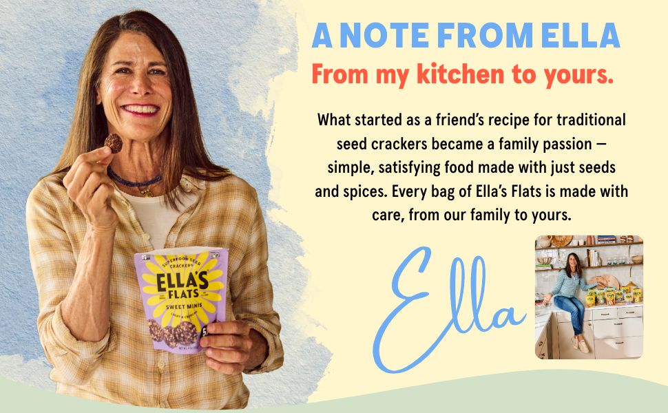 I purchased these after reading about them in the book “Good Energy”. I am so glad that I did. They arrived overnight, in perfect condition. The flavor and texture are more than I could have ever hoped for, in a healthy cracker. These will be a staple in my pantry. Thank you Ella and crew!!