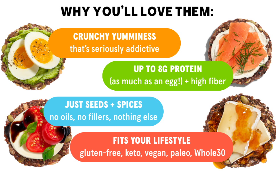 These are actually delicious. Expensive, but the serving size of 3 good size crackers is enough. 7grams of protein, 4 grams of fiber and no net carbs. Super clean ingredients- no fillers, just seeds. I had purchased these a couple of years ago, it was likely a different flavor, but I wasn’t impressed. I thought I would give them another try, given they align with how I am eating these days and the “everything” flavor is really delicious. This will be a subscription item going forward.
