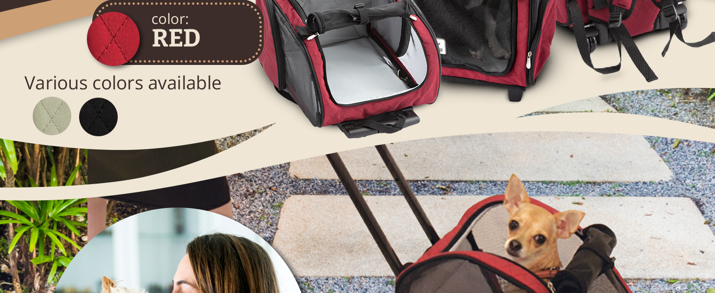 SnoozerRoll Around Travel Dog Carrier Backpack 4-in-1- Rolling Backpack Pet Carrier with Wheels for Cats & Dogs, Pet Stroller, Travel Bag for Pets Up to 30 Lbs - Large, Red & Black