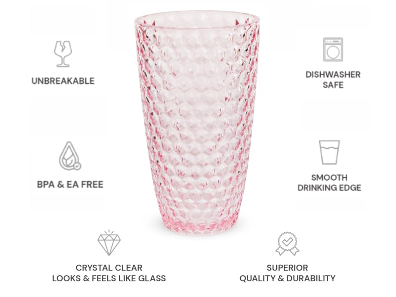The BELLAFORTE Shatterproof Tritan Plastic Tall Tumbler set includes four 19oz BPA-free tumblers crafted from durable, dishwasher-safe Tritan plastic. Designed for modern hosts, these vibrant pink tumblers combine unbreakable strength with sophisticated aesthetics, making them ideal for parties, poolside fun, and everyday use. Their eco-friendly, reusable design ensures long-lasting enjoyment without compromising style or safety.