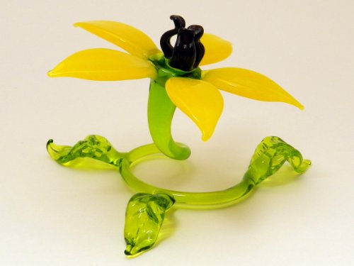 Blown Glass "Murano" Art Figurine Yellow Flower #6466