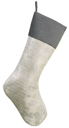 This winter wonderland inspired stocking will be a gorgeous accent for your home this holiday season. At 20" long, it will hold all of the stocking stuffers with ease. Features a pretty gray and silvery white design adorned with snowflakes. High quality at a great price. Comes ready to hang with fabric loop. Measures 20" x 9.5"