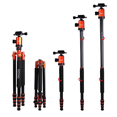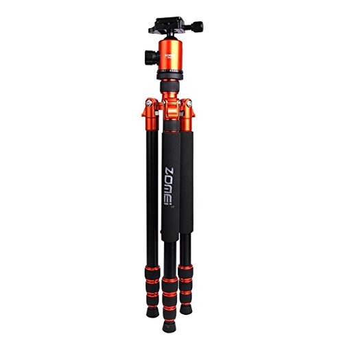 Zomei Z888 Compact Travel Professional Aluminium Tripod Monopod with Ball Head for All Canon Sony, Nikon, Samsung, Panasonic, Olympus, Kodak, Fuji, Cameras and Video Camera (Orange)Zomei Z888 portable Travel Tripod Kits provide an exceptional combination of materials, construction and features - plus a splash of color! Great for point & shoot, mirrorless, micro 4/3 and DSLR cameras, plus converts to a monopod in seconds. It is great tripods for digital cameras. Also it is ideal for both indoor and outdoor photography. Perfect for events, sports activity, capturing that one amazing shot.It can be used for many different style cameras .Carry case with shoulder strap included for transport and protection.Model: Z888 Maximum Load: 20 lbsMax Height: 66.3 in (1685mm)Folded Length: 18.1 in (460 mm)Number of Leg Sections: 4Leg Lock Type: Twist lockCenter Column: Fixed Center ColumnPanning Range: 360 degree Spiked Feet: N/ASeparate Panning Lock: YesQuick Release (QR) Plate: Arca-Swiss StyleBubble Level: YesHead Mount Thread Size: 3/8"Weight: 3.7 lb (1.7 kg)Color:Orange Package Include:1 x Tripod1 x Carrying CaseNote:Light shooting and different displays may cause the color of the item in the picture a little different from the real thing. The measurement allowed error is +/- 1-3 cm.