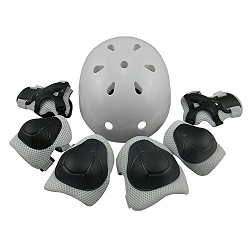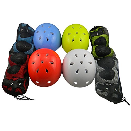 Item Specifics: Age:3-15 years old Children Color: White/ Red/ Blue/ Green Material: ABS Head Size:48-54cm Suitable Sport: Skateboard Skateboarding Roller Rollerblade Bicycle Ride Bike Cycling Inline roller Kick scooter Outdoor activities Other extreme sports Package: 1 helmet 1 Pair of Elbow pad 1 Pair of Knee pad 1 Pair of Wrist pad