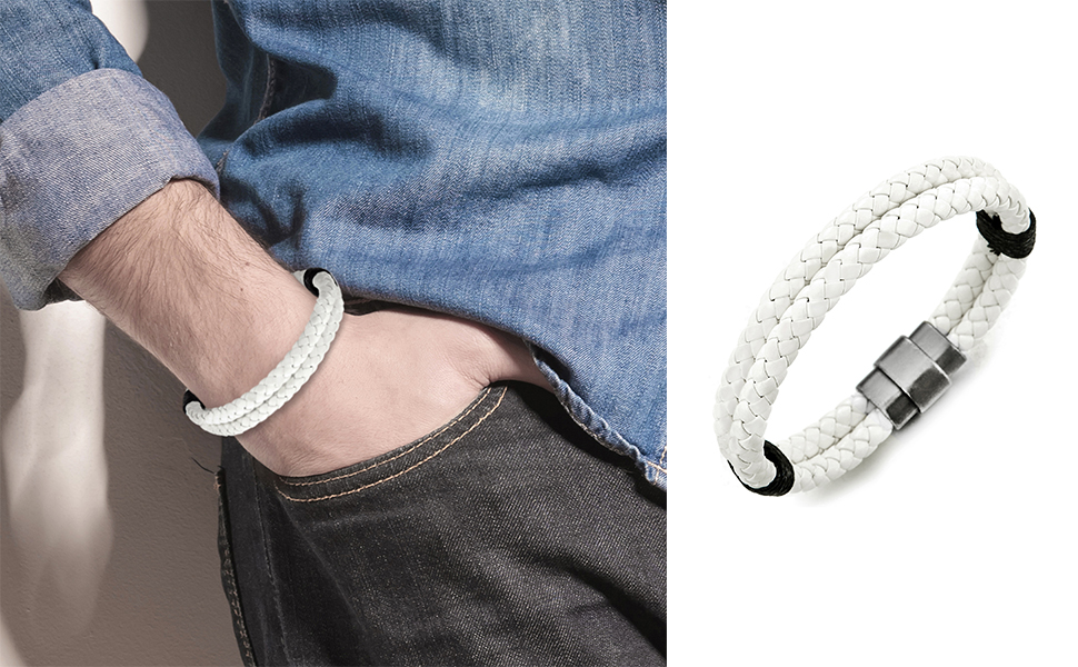 COOLSTEELANDBEYONDBraided Leather Bangle Bracelet for Men Women Genuine Leather Wristband with Magnetic Clasp