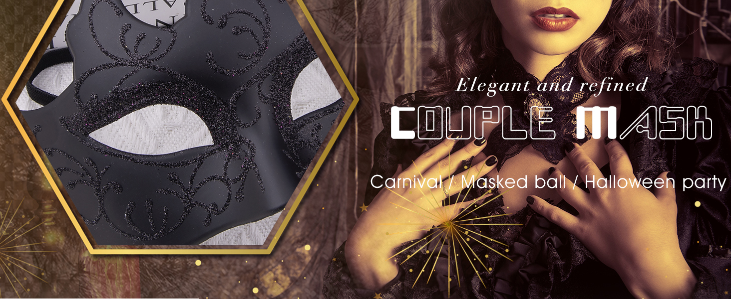 SIQUK Couple Masquerade Masks Set Venetian Party Mask Plastic Halloween Costume Mask Mardi Gras Mask for Women and Men