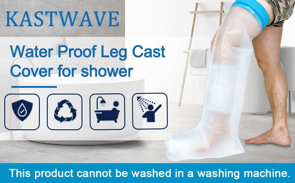 The KASTWAVE Waterproof Leg Cast Cover is a durable, neoprene and TPU protector designed to keep casts, bandages, and wounds completely dry during showers. It fits thigh circumferences from 9 to 25 cm and leg lengths up to 35 inches, featuring a watertight seal that combines comfort with high tension and tear resistance. Reusable for up to 10 weeks, this non-latex cover offers safe, skin-friendly protection backed by a satisfaction guarantee.