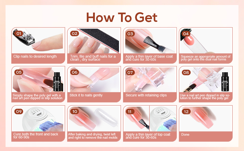 The JEWHITENY Poly Extension Gel Kit combines 14 vibrant builder gel colors with a powerful 48W LED lamp and essential nail tools, enabling quick, durable, and flexible nail extensions. Designed for beginners and pros alike, its non-toxic formula ensures healthy nails with salon-quality results in just minutes.