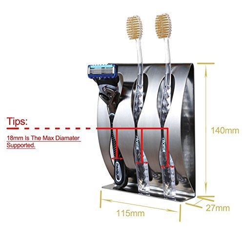 Stainless Steel Toothbrush Holder Specifications: ●Color:Silver ●Type: 3-Seat ●Material:304 Stainless steel ●Finish:Brushed Finish ●Product Size:Length 14cm wide 11.5cm high 2.5cm How to Install? ★In Order to Durable Use, Please Confirm the Mount Wall Surface is Smooth and Dry, Use Hair Dryer Heat the 3M Self-Adhesive for a While. ★Then Stick and Press for 1 Minute. After 24 Hours you can Hang Accessories. Use of places: bathroom, kitchen and other smooth walls. Features: 1. Convenient and environmentally friendly. 2. Firm, super said gravity, the longer the more solid. 3. Free nails, easy installation, no drilling, no damage to the wall. 4. Round hole curved design, edge polished, smooth and not hurt hands, fashion beautiful, fit modern life. 5. Bottom hollow design, novel, stylish, no dead ends, fast evaporation of water, not easy to breed bacteria,difficult to filth. 6. Scientific spacing design, toothbrush easy to place, ready to use, easy to fall off. Package List: 1 x Toothbrush Holder ★100% Satisfaction Warranty:If you're not satisfied with our product please contact with us.we will make things right for you.