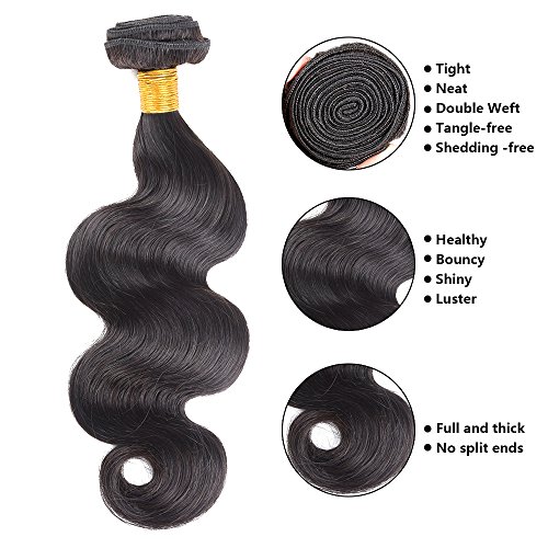 Hair Features:1).Hair Material: 100% Unprocessed Brazilian Virgin Human Hair, Natural and Healthy2).Hair Colour: Natural Black Colour (close 1#B), Can be Dyed3).Hair Texture: Body Wave Hair Extension4).Hair Weft: Machine Double Weft5).Hair Grade:9A Grade Brazilian Body Wave Human Hair Bundles6).Hair Length: 16 Inches 18 Inches 20 Inches 22 Inches, Provide Any Mix Length According Request7).Chemical Processing: None8).Related Textures: Straight,Curly wave,Deep Wave,Body Wave,Loose wave9).Lace Material: Swiss Lace, medium brown, durable and strong, can be bleached10).Closure Type: Brazilian Human Hair Extensions11).Closure Quality: Unprocessed Virgin Hair Lace Closure12).Lace Size: 4x4 Inches13).Closure Length & Weight: 16 Inches,34 grams14).Closure Density: 130%FAQ:Q: How to tell human hair with synthetic hair?A: After burning, human hair smell foul, show white smoke and be ash when pinched;synthetic hair show black smoke and be a sticky ball.Q: How long does it last?A: This hair can last for a very long time depending on how you maintain it. Treat it like your own hair and take very good care of it for it to last longer.Q: Can I restyle the hair?A: Yes, the hair can be restyled and bleached as your own hair. We highly recommend having your hairdresser restyle the extensions as you will get the results you want, instead of doing that yourself.If you have any other questions, please directly write to us. We will respond within 24hrs.