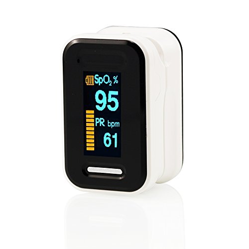 The accessible multifunction button powers on oximeter, changes OLED direction and sets alarm. Once fingertip is placed in the padded clip and power is switched on the oximeter will begin measuring oxygen levels and heart rate. When monitoring is done simply take fingertip out, device will automatically power off after 8 seconds of no use. Oximetry made simple! Finger Pulse Oximeter is an affordable and accurate way to check pulse rates and blood oxygen saturation levels. Self-adjusting finger clamp plus simple one-button design allows for easy operation. Small portable size makes it easy to handle and carry. Helpful for athletes and pilots to obtain quick and accurate oxygen saturation readings.Integrated SpO2 probe and processing display module plus SpO2 and Pulse Rate and bar. Low battery level indicator. Auto power off. Intended use for spot check of pulse rates and blood oxygen saturation level at home, in sport and recreational use, such as mountain climbing, high-altitude activities and running. This device is for Sports & Aviation use only and is not a medical device. Detailed description of product functions 1.Dispaly Type:LCD display or OLED display 2.SpO2:Measurement range:70%~99% Accuracy:±2% on the stage of 70%~99%,Unspecified(≤70%)for SPO2 3.Power:two AAA 1.5V alkaline batteries 4.Power consumption:below 30mA 5.Automatic power-off:the product shuts off by itself when no finger is in the product in 8 seconds. 6.Opration Enviroment:Operation Temperature:5℃~40℃ Product specifications Item size:2.3*1.4*1.3 inch Packing size:3.5*2.4*1.5 inch Item weight:0.15 pound Packing weight:0.22 pound