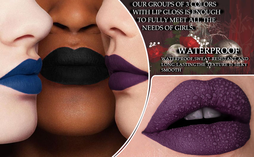 Evpct 3pcs Dark Blue Black Purple Matte Liquid Lipsticks Lip | Desertcart Ireland