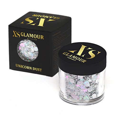 ✮ XS Glamour cosmetic glitters are your MUST HAVE secret tool to achieving Your Superstar Look. Sparkle by day, Dazzle by night. ✮ Keep your party game strong with our high quality glitters. Our glitters are formulated with a combination of carefully selected sizes, shapes and colours including small specles to ensure You Shine From Every Angle. ✮ UNICORN DUST is a magical blend of soft purple, light blue, and a dazzling silver. Our glitters are made with a dynamic pigment and metallic shine ✮ By purchasing from us, you will receive a stylish pot containing 8 grams of cosmetic glitter. The handy little tub has a secure screw on cap which is safe to keep in your handbag or makeup bag ✮ Our glitters can be used to add Sparkle Your Nalils, lift your eyes to hide those sleepless nights, add shine to your hair and Add Fun to your Life. ✮ Give your self some XS Glamour with our range of different colours to mix and match. ✮ We recommend using a balm or gel to apply glitters to the skin - Using either a small brush or fingertips and remove it with your usual daily makeup remover.