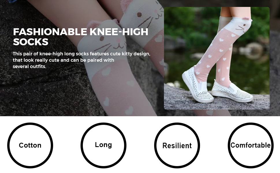 Zibuyucotton Long Socks For Girls Cute Kitty Design Winter Warm | Desertcart Ireland