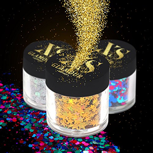 ✮ XS Glamour cosmetic glitters are your MUST HAVE secret tool to achieving Your Superstar Look. Sparkle by day, Dazzle by night. ✮ Keep your party game strong with our high quality glitters. Our glitters are formulated with a combination of carefully selected sizes, shapes and colours to ensure You Shine From Every Angle. ✮ GOLD DUST is a Magical Mix of Pure Glamour in One Pot! A Glorious blend of Gold and Silver Rainbow Stars. Our glitters are made with high intensity pigment and metallic shine ✮ By purchasing from us, you will receive a stylish pot containing 8 grams of cosmetic glitter. The handy little tub has a secure screw on cap which is safe to keep in your handbag or makeup bag ✮ Our glitters can be used to add Sparkle Your Nalils, lift your eyes to hide those sleepless nights, add shine to your hair and Add Fun to your Life. ✮ Give your self some XS Glamour with our range of different colours to mix and match. ✮ We recommend using a balm or gel to apply glitters to the skin - Using either a small brush or fingertips and remove it with your usual daily makeup remover.