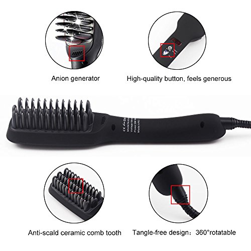 Are you still plagued by hair dry and knotting? Do you want to be your own stylist at home?YANX hair straightener brush let your dream come ture.Come on and experience gorgeous sleek salon hair styles every day:No hurt, no burning on your hair, no time and money wasting.Get naturally straight, smooth, frizz-free hair in minutes, more natural looking than using a flat iron.Save your time and money: An ideal solution for you when you are busy, hurry to go to work, dating, or important activities.Advantages:1. All shells are made of high-temperature-resistance engineering plastic, such as PET/PPS/PAEE.2. Electric main-boards adopt CCC Criterria, a type of European EML authentication.3. Clear LCD display clearly shows the brush temperature. Fully adjustable.4. Easy to operate with LCD temperature control, the anti-static straightener works with no risk, very safe.Product specification:Size: 35cm x 7cm x 13cmitem weight: 730gHow to use:1.Plug in the power and press the power button for several seconds to start the straightener. The brush will heat quickly in a few minutes.2.There are 5 electable temperature modes, you can choose one you need by Temp set button.3.Then the temperature will display on the screen, the temperature reaches as the screen stops flashing.4. Start straighting your hair now.Package included:1 x Hair straightener brush1 x User manual1 x Travel bag 100% Refund Guarantee: In pursuit of customers' trust and satisfaction, we encourage our customers to contact us if any problems, we will serve you in one business day.