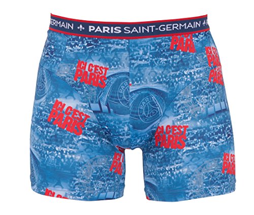 100% elastane boxer with the colours of the Paris Saint-Germain with visual fans and Ici c 'est Paris Print.