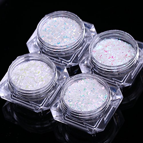 Specification: Quantity: 4 Boxes Net weight of sequins: Approx. 1g Color: As the picture shows Package Contents: 4 Boxes Nail Sequins Feature: 100% brand new and high quality Nail decoration Easy to apply on natural or artificial nails How to use: 1.Prepare your nails with UV BASE COAT and cure it under UV/LED lamp. 2.Apply UV COLOR GEL and cure it under UV/LED lamp. 3.Apply UV TOP COAT (DO NOT cure!) 4.Use eyeshadow Rub/Pat to apply the sequins onto your nails. 5.Cure it under UV/LED lamp. 6.Apply UV TOP COAT and cure it under UV/LED lamp.