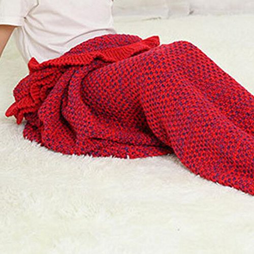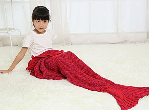 SPECIFICATION: Color: Blue/Purple/Pink/Ginger Material: 100% knitting polyster Size: 135cmX65cm(53"x26") For the season: spring, summer, autumn,winter Packaging Detail:1 x Mermaid Blanket FEATURES: Many little girls dream to be mermaid and swim in the sea, now your lovely girl's dream will come true. Mermaid Blanket has lovely color and unique pattern for who like mermaid. Knitting Acrylic Fibers material is really warm and super soft for wrapping in cold day. FIT THE THEMES OF EVERY SEASONS: We always need a soft blanket when reading or sleeping all year round, watching TV, in air condition room. Mermaid Blanket is not only a simple blanket, but also can warm your girl feet well. It has been proved that keep feet warm will improve kids health. GREAT GIFTS: How long did you buy your families a gift? Mermaid Blanket is a great gift for Festival,birthday and many occasions in all seasons. If your kid does not use it temporary, put a doll in it, it is also a art in your living room.