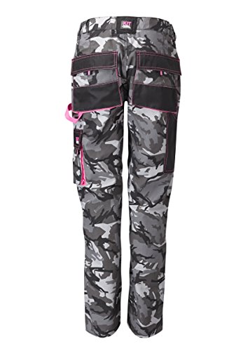 Workwear combat trousers in our very own Workkitgirl camouflage design with a hint of pink. Made from abrasion resistant polyester oxford and cotton, these combats are hardwearing but comfortable. The ergonomic, streamlined style has cleverly designed waistband shapers to allow better mobility. Integral knee darts make bending and floor work easier. There are 8 functional pockets with further compartments for handy storage from nails and screws to mobile phone and ruler. A hammer loop and D reing finish off the professional look to these exceptionally versatile trousers.