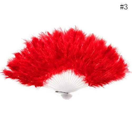 Color: White,Red,Black,Rose,Yellow,Purple,Blue,Green ,Pink Material: Feather & Plastic Size: app 46cm x 28cm package just including one fan Note: The Measurement Could Be Different About 2-3cm Accroding To Goods. Colors Will Be Different By Each Monitor And Compute