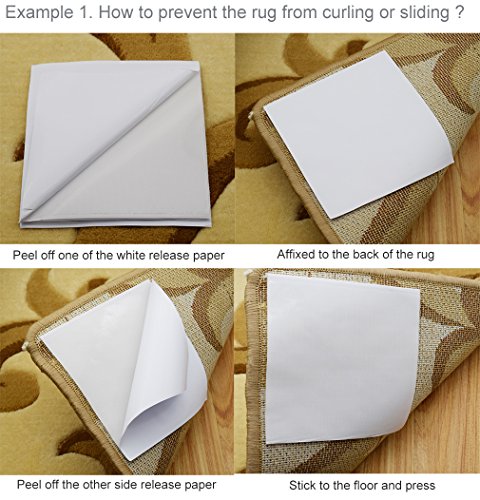 According to customer feedback, the small rug anchor is difficult to prevent stubborn / special rug sliding, so we design larger size and stronger glue products to meet your desire for stronger stickiness. Parameters: Shape: Square Size: 15 * 15 CM Thickness: 0.3 CM/PCS Weight: about 0.15KG/Pack Quantity: 4 PCS/Pack Applicable temperature range: 14-140℉/-10-60 ℃ The best initial bonding temperature: 68-77 ℉ / 20-25 ℃, 24 hours after the best fit fastness Storage conditions: cool and dark, film bag sealed Whether it can be used outdoors: temporary use, intolerant long soak, not the sun long direct Suitable for range: flat, clean, smooth, hard material on the floor or surface Not suitable for range: rough, soft, moist, dusty floor or surface How to use: 1. Keep the back of rug and floor flat, clean and dry before use. 2. The hook surface affixed to the back of the rug, the other side attached to the floor, after the press, you can play a fixed role to prevent sliding. 3. The anchors allow you to clean , remove and replace the rug as well, you only need to separate the hook and loop can be easily achieved. 4. If you want to prevent the rug slide on the carpet , just hook surface attached to the back of rug, the hook surface role on the carpet has a good friction, play a non-slip effect. CAUTION: A.Keep away from Children and Pets. B.How to clean up when you do not need it: With a soft cloth dip alcohol or soapy water, and then gently wipe the paste site, the product will become easy to fall off the glue.