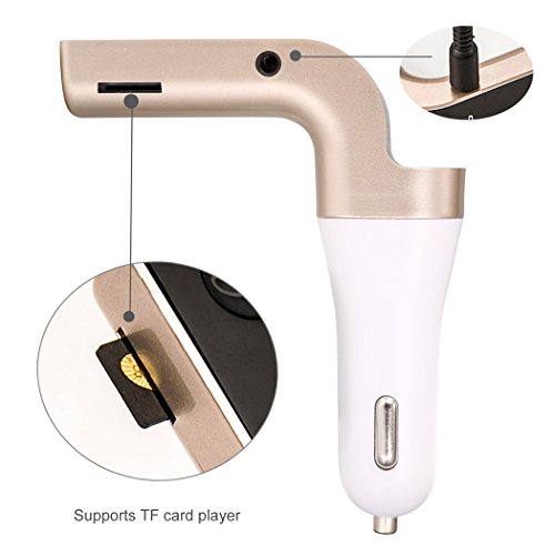 100% Brand New. Material: Plastic 5 Colors: Silver, Rose Red, Pink, Gold, Black Size: 9.5 x 6.5cm/3.7 x 2.5inch (L x W) Rated Working Voltage: 12V-24V Limited Working Voltage: 9-24V USB Output: 5V/2.5A Working Temperature: 0~50℃ Play Format: MP3, WMA, WAV, FLV SNR: >60dB Degree of Distortion: Frequency Response: 20Hz-15Khz Resolution of Right and Left Channel: >60dB Bluetooth Version: V2.0+EDR Bluetooth Sound Processing: A2DP Function Supported Bluetooth Transmission Distance: 10M Effective Distance of Bluetooth Microphone: 0.5-2M FM Frequency: 87.5~108Mhz FM Radio: Stereo Digital PLL Frequency Locking FM transmitter. LED display windows. LINE audio input. Independent Bluetooth start/shutdown button. Supports playing music by USB disk. Supports MP3/WMA/WAV/FLV music format. Answer/hang up/reject/redial the via bluetooth. Bluetooth stereo music play. Call Echo Cancellation and Nosie Reduction(CVC) technology. Dual USB output voltage, provides powers to other devices up to 5V/2.5A. Automatic memory function of power failure frequency point. Display of on-board battery voltage. Package Content: 1 x Bluetooth FM Transmitter, 1 x User Manual, 1 x Audio Line