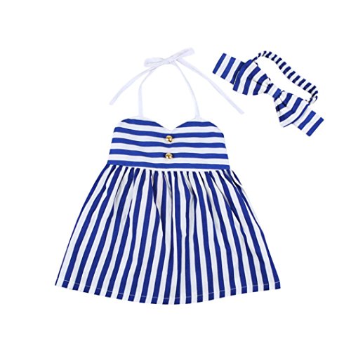 Size Details: Size:2-3Y Label Size:80 Bust:46CM/18.1" Length(Not Include Straps):35CM/13.8" Height:80CM Size:3-4Y Label Size:90 Bust:48CM/18.9" Length(Not Include Straps):37CM/14.6" Height:90CM Size:4-5Y Label Size:100 Bust:50CM/19.7" Length(Not Include Straps):40CM/15.7" Height:100CM Size:5-6Y Label Size:110 Bust:52CM/20.5" Length(Not Include Straps):43CM/16.9" Height:110CM Size:6-7Y Label Size:120 Bust:54CM/21.3" Length(Not Include Straps):45CM/17.7" Height:120CM Specifications: Gender:Girls Clothing Length:Regular Pattern Type:Stripe Decoration:Button Sleeve Style:Regular Style:Cute Material:Cotton Blended Sleeve Length:Sleeveless Package include:1PC Dress+1PC Headband
