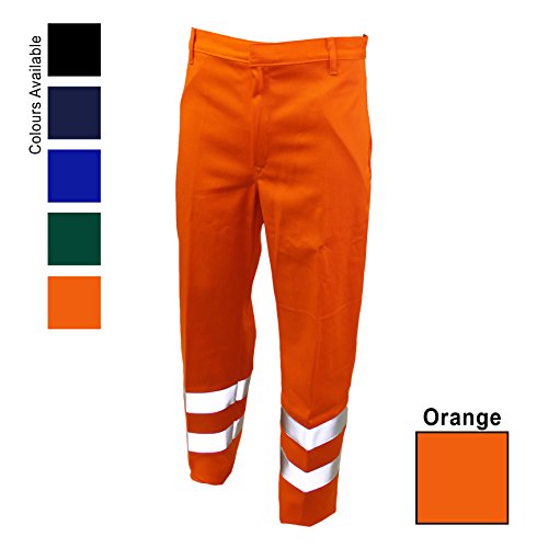 Flame Retardant Hi-Vis Trouser 2 strips of Hi-Vis Reflector Tape Back Pocket with Flap fastened with 2 Concealed Studs Side Pockets / Hip Pockets Brass Zip Fastening with Hook and Bar Clip 5 Waistband Loops Inside Leg Length 79cm (31'') Proban - Flame Retardant - 100% COTTON EN ISO 11611 EN ISO 11612