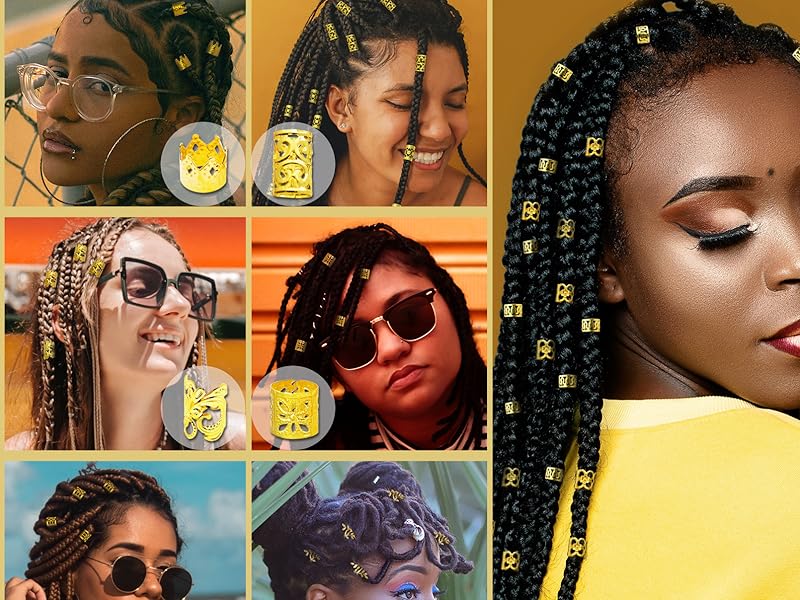The Fscwlmon 260 Pcs Hair Jewelry Kit offers an extensive collection of 13 stylish gold-plated metal hair accessories, including cuffs, rings, and charms designed for braids and dreadlocks. Durable and adjustable, these reusable pieces empower you to create personalized, eye-catching hairstyles perfect for any occasion—from casual days to high-profile events.