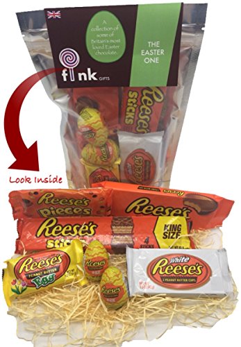 The REESES EASTER Onefink gifts are proud to present 'The REESES EASTER One' A collection of some of America's most loved Reese's peanut butter chocolate candy. This Hamper comes in a re-sealable air tight bag to keep these delicious peanut butter treats tasting fresh. This is an ideal gift for any Peanut Butter & Reeses candy chocolate lover with popular treats including:Reeses Peanut Butter Filled EggsReeses Chocolate EggReeses Sticks KingsizeReeses Peanut Butter CupReeses Peanut Butter White Chocolate CupReeses PiecesWeight including packaging 380g Best Before 17/08/2018