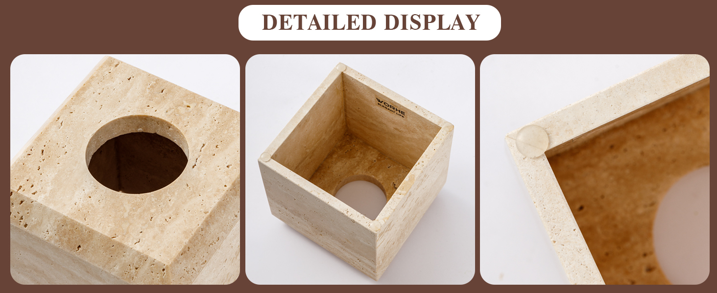 SIZE: 5.5”L x 5.5”W x 5.5”H COLOR: Natral Beige MATERIAL: Italy Natural Travertine Stone NOTES: 1. It’s NORMAL that tiny holes and small internal crack appears due to natural stone features. 2. The marble textures will be different from each other and no two will be exactly the same. Please note before purchasing. 3. Use water or damp clothes to wash and clean. 4.If you have any problem while your purchase, please feel free to contact us. WORHE is developing in manufactory of Natural Marble home décor, aiming at giving you elegant and comfy home experience. All quality marble we use is radiation free, waterproof and fireproof. Please look forward to our marble home product.