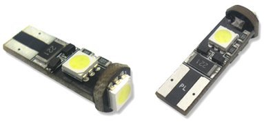 T10 wedge type 5 LED 360 Degree canbus white LED upgrade sidelight bulbs. Easily upgrade existing halogen bulbs to LED. Applications include sidelights, number plate lights and interior lighting. Suitable for vehicles with and without Canbus wiring systems. Supplied as a pair (Two per pack) Please note that we can only confirm the legality for road use of these bulbs within the European Union.