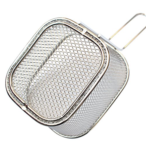 Mini Stainless Steel Chip Serving Baskets This is a colander and a filter in one! High-quality food grade stainless steel! Functionally designed for home or restaurant kitchen: submerged vegetables, pasta, noodles, eggs or dumplings in a pot of boiling water or broth and prepare healthy meals without using high calorie and high cholesterol oil with this basket filter. Use it to cool clean and strain fresh fruits and vegetables or immediately use it to boil or steam food ingredients Made of heat-resistant hook-on wooden handles, it is designed for the versatility of cooking food. Hold the handle, grab or reheat the food by hand, or hang the hook handle at the edge of the deep pot for cooking or cooking vegetables, noodles, pasta, meat, eggs and dumplings. It is cleverly designed, easy to handle and store. The proper size of the punch is also small enough to strain the pea, diced carrots and noodles. It is absolutely versatile. It can also be used to remove oil from fried dishes. It is an essential kitchen tool for every family.