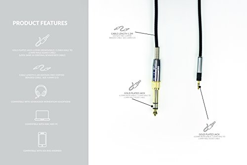 NEW Replacement Audio upgrade Cable For Sennheiser Momentum + Audio Technica Headphones Brand new and high quality Audio. length:1.2m Cable Diameter : 4mm jack : 6.35 / 3.5mm Male to 2.5mm Male package include: 1*replacement cable. This accessory is compatible with the following: Sennheiser HD598 HD558 HD518 Headphones. Comes in AGS Retail Ltd Branded Packaging.