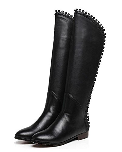 Brand: ZCHHelp surface material: leatherBoots inside material: artificial short plushInsole Material: Artificial short plushCortical features: water stained skinSole material: high wear-resistant tendon at the endBoots Name: Knight BootsTube high: long tubeToe style: round headFollowed by high: flat withWith the end of style: rough withTube height: 40 cmTube circumference 35.5 cmTube mouth 35.8 cmClosed way: rear zipperPopular elements: flowersShoes production process: adhesive shoesColor classification: beige, blackSize: 34 35 36 37 38 39 40pattern: plainsuitable season: winterApplicant: youth (18-40 years old)