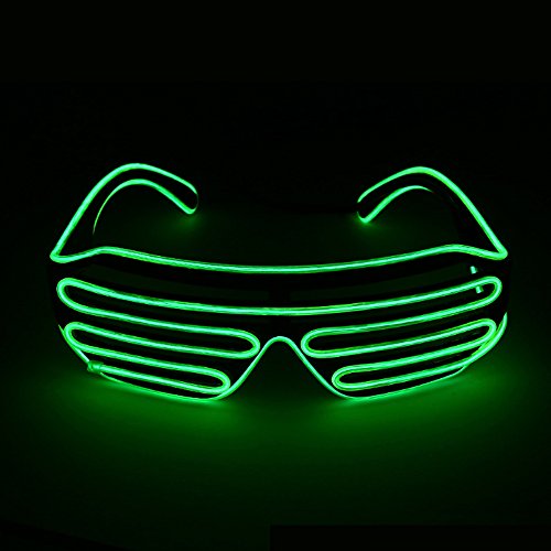 Features: 100% Brand New and High Quality. It's easy to wear. It can be use on both indoor and outdoor night shows and activities. It can be use for every age group like kids, adults, men and ladies. Has battery case controller switch button. When you press the button, you would find the light has four modes: constant light up, slow flashing and fast blinking and shut off. There is a long cable on the back of the glasses so that you can leave the battery compartment in your pocket or use the belt clip on your belt or T-shirt. Battery pack and eyeglasses separated design giving you a long time enjoying experience. These glasses can be worn at parties clubbing or in the disco at the top of friends or performers, but also wherever you want. Specifications: Material of frame: Plastic Material of Glasses: AC Connected Wire Lengh: 35 inch Battery Pack Size: 9.1 x 3.3 x 2cm (3.6 x 1.3 x 0.8 inch) Battery Type: 2 x 1.5V AA dry batteries (not included) Colour: Blue, Green, Pink, Purple, Red Note: -2 AA battery are required, but not in the package. (Please don't buy cheap knockoffs that use 2 watch batteries) -After use, remove the batteries from the battery compartment. If the batteries have been put on for a long time, they could damage themselves and the glasses. -If there is battery acid on your old batteries, please stop using them and replace new ones. -Please don't stress, not waterproof. Packing include: 1 x EL Wire Glasses 1 x Battery Pack (battery not included)