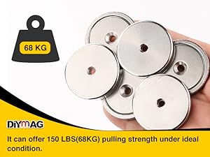 The DIYMAG 6Pcs Neodymium Round Base Cup Magnet set includes six powerful 1.42-inch magnets, each capable of holding up to 150lbs. Coated with a durable triple-layer finish, these magnets resist rust and corrosion, making them ideal for various applications in homes, offices, and workshops. The set comes with 12 adapter screws for easy installation, ensuring you can declutter and organize with ease. Designed for longevity and strength, these magnets are a must-have for any DIY enthusiast or professional.
