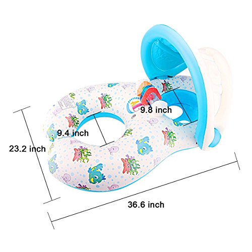 Features: Removable and adjustable canopy provides sunscreen and parents can adjust or remove the canopy, in order to maintain eye contact with your child. Providing steering wheels and speakers is a great fun for your baby in the poor, so that they learn to swim fast. Comfort seats with low center of gravity, safety brackets on both sides, enhance safety. Package Including 1 x Swimming Inflatable Float Boat Notice: When inflate the float you should Wait 15 minutes, which ensure no leak before use. Baby usually do unexpected action, please do not let your baby swimming alone.