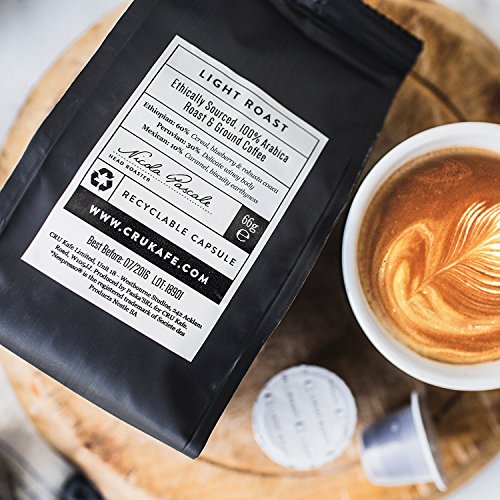 Our Light Roast was the first blend ever created by CRU, and revolves around three brilliantly speciality arabica coffee beans from Mexico, Peru and Ethiopia. The Mexican bean grounds the coffee in a rich, biscuity earthiness which is lifted by the floral of the Peruvian bean, whilst the overall character of the blend is brought together by the positive acidity and fruity citrus of our exceptional Ethiopian Simdamo. Our coffee beans are certified 100% organic and fairtrade which means no nasty chemicals or aggressive farming practices. We constantly invest in our packaging and pods to leave the smallest footprint possible on the planet. Once opened, keep our coffee capsules in an airtight container and consume within 4-5 weeks. Compatible with Nespresso machines for home use including Citiz, Pixie, Essenza and Lattissima. Copyright 2015 CRU, All rights reserved. Nespresso is a registered trade mark owned by Societe Des Produits Nestle S.A. CRU Kafe Ltd is not connected or associated in any way with Nestle or Nespresso S.A.