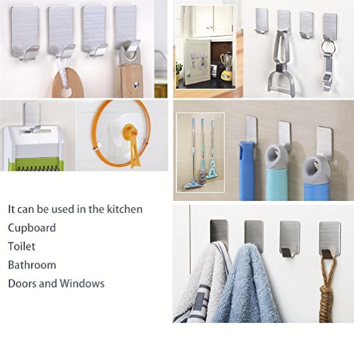 Due to the cold weather, we suggest you blow the sticking area dry with hot blow by hair dryer. Then install the hooks. It will bring better effect and more stronger. Features : -Our hooks are of high quality, strong, solid, and have a unique, streamlined, modern design.Attractive, strong and easy to use, these unique wall hooks are bound to draw compliments. -Brushed Stainless Steel looks more elegant and tidy around the house. -No sharp edges, nice shape for keeping holding the towels, pot holders, jackets, or whatever you hang on them. -It can be placed in bathroom wall next to the shower so you can reach your towel easily;in kitchen for organize cooking utensils;sticked on walls and doors for caps coat,other accessories as you wish! -The mounting side employs high strength 3M secure adhesion on a wide variety of surfaces including painted textured wallboard, dry wall, ceramic and porcelain tile, granite, glass, metal, cultured marble, plastic and paneling. Specifications: -Material: Stainless Steel -Surface: Brushed -Backside: 3M self-adhesive -Dimensions:45mm x 25mm Tips: - Please ONLY apply to clean and dry surface (powder wall is not fit) - Put pressure hardly on it when apply -Wait at least 24 hrs before hanging something - Please keep in mind dont get it wet within a few days after pasting. Package included: 5Pcs 3M Self Adhesive 304 Stainless Steel Wall Hooks