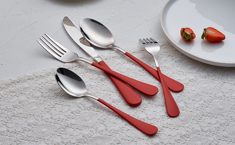 Red Silverware Set 20 Piece 18 0 Stainless Steel Flatware | Desertcart Ireland
