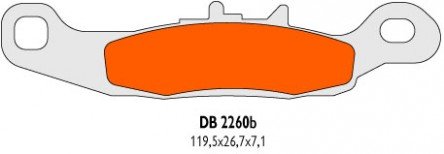 DELTA BRAKING brake pads have their origins in motocross and off road driving. The know-how and insight into this extreme field of application led to the development of high quality sinter metal brake pads that are used today in the strongest engine size classes for motorcycles, scooters and quads.Excellent wet braking behaviour, no fading, perfect response, low wear and excellent braking performance are the characteristics that one can expect from a DELTA BRAKING pad.The pads are TÜV-certified and come with approval from the Federal Office for Motor Vehicles. They are street legal and therefore are not just a top choice for the race track. Suitable for all brake disc types.100% asbestos-free!Dimensions 94.7x35.8x7.8mm and 119.5x26.7x7.1mmReference numbers:DB2260MCB697Important note: Please make a visual inspection before purchase. There are a lot of vehicle series with different components.