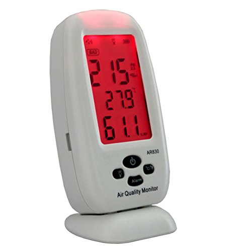 Features: 1. This air quality is based on the principle of laser scattering, it can detect PM2.5 concentration of your house. 2. It can also measure the temperature and humidity simultaneously and temperature can be displayed in 2 units: °C or °F. 3. The backlight in 3 colors: green, yellow, red which respectively represent air quality level: good, fair, bad. 4. When PM2.5 concentration reaches bad level, the meter will automatically give an alarm. 5. With a large capacity lithium battery, the meter can work for a long time. 6. With a USB cable, it can be connected with PC or power supply for charging. 7. With a removable base, the meter can be placed on the table. 8. With a hanger, it is convenient to hang on the wall. 9. Perfect for houses, offices or cars. Product specification: PM2.5 Measuring Range: 0-999μg/m3 Resolution: 1μg/m3 PM2.5 Level: 0-75μg/m3 Good; 75-150μg/m3 Fair; >150μg/m3 Bad Temperature Measuring Range: 0-45°C / 0-113°F Humidity Measuring Range: 0-99%RH Power Adapter: Input: AC100-240V Output: DC5V 1A Package Contents 1 * Air Quality Detector 1 * USB Cable 1 * Power Adapter 1 * Lithium Battery 2 * Accessories 1 * Case