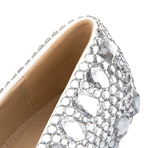 The wedding and prom rhinestone platform shoes material is rhinestone,rubber and leather . the rhinestone is handmade on the upper, sole material use rubber, Lining material is sheepskin leather, and the colors crystal for bridal shoes. It's style of comfortable,wedge and platform for the Pump Shoes. The high heel is suit for Wedding Shoes, Evening Shoes and party Shoes,It's fit spring, summer, fall, Winter. Don't miss it.