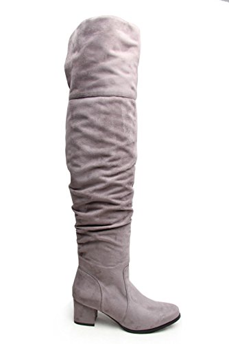 NEW FASHION Womens Ladies Over The Knee Mid Heel Slouch Fashion Faux Suede Boot UK Size 3-8 (8, Grey HC33)