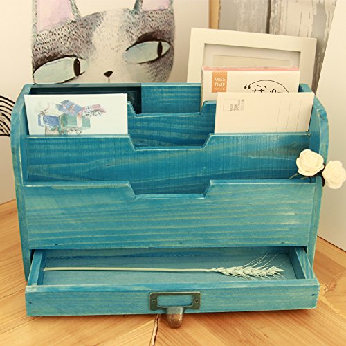 Specification: 1.Name:YUMU Desktop Wooden Compartment Desk Organiser File Holders Pen Pencil Box with Drawer For Office and Home JM1069 2.Overall Size:11.4*6.69*4.33 inch 3.Weight:About 2.64 Ib 4.Color: Brown & Burly Wood & Vintage Blue Features: Good helper for you to organizer your books and files; Easy installation, simple and convenient. NOTE: Please keep the item away from fire. Attention: If you have any questions about our products,please feel free to contact us, we will reply you under 24 hours.